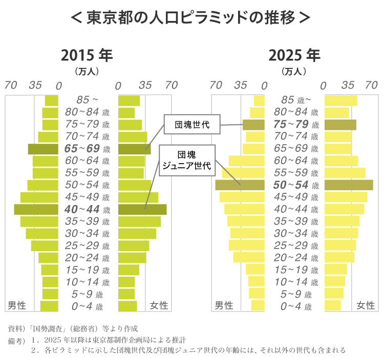 人口の多くを担っている「団塊世代と団塊ジュニア世代」